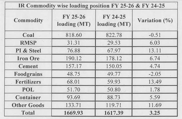 Indian Railways Freight Loading Hits Record 1,670 MT in FY26, Strengthening India’s Logistics Backbone