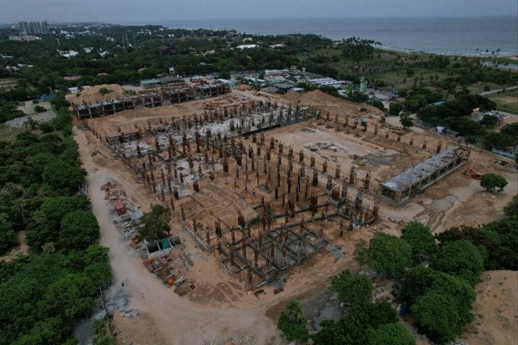 Construction work on the Kalaignar International Convention Centre at Muttukadu, near Chennai, has gathered significant momentum, with the superstructure phase now progressing rapidly. The ambitious ₹525-crore project, one of Tamil Nadu’s flagship infrastructure initiatives, aims to transform Chennai into a global hub for large-scale conventions and international events.