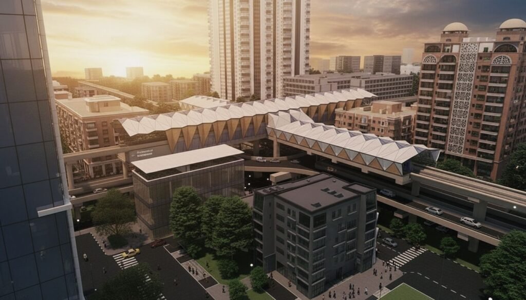 The station is being designed not just for transit but as a hub of urban activity. A plaza will occupy the first level, providing a space for passengers to gather, relax, and access retail services. Above this, a grade separator will facilitate smooth vehicular movement, while the third and fourth levels will house the platforms for Corridors 3 and 5 respectively. The Corridor 5 platform, at a height of 28.8 metres from the road, will feature a curved track that passes through the fifth floor of an adjacent eight-storey building. Corridor 3, slightly lower at 21.8 metres, will allow seamless boarding for commuters.