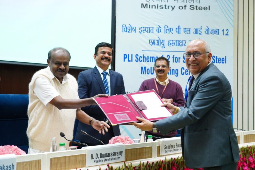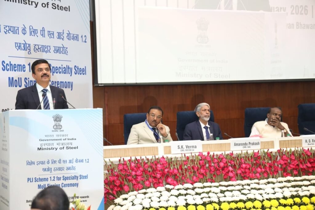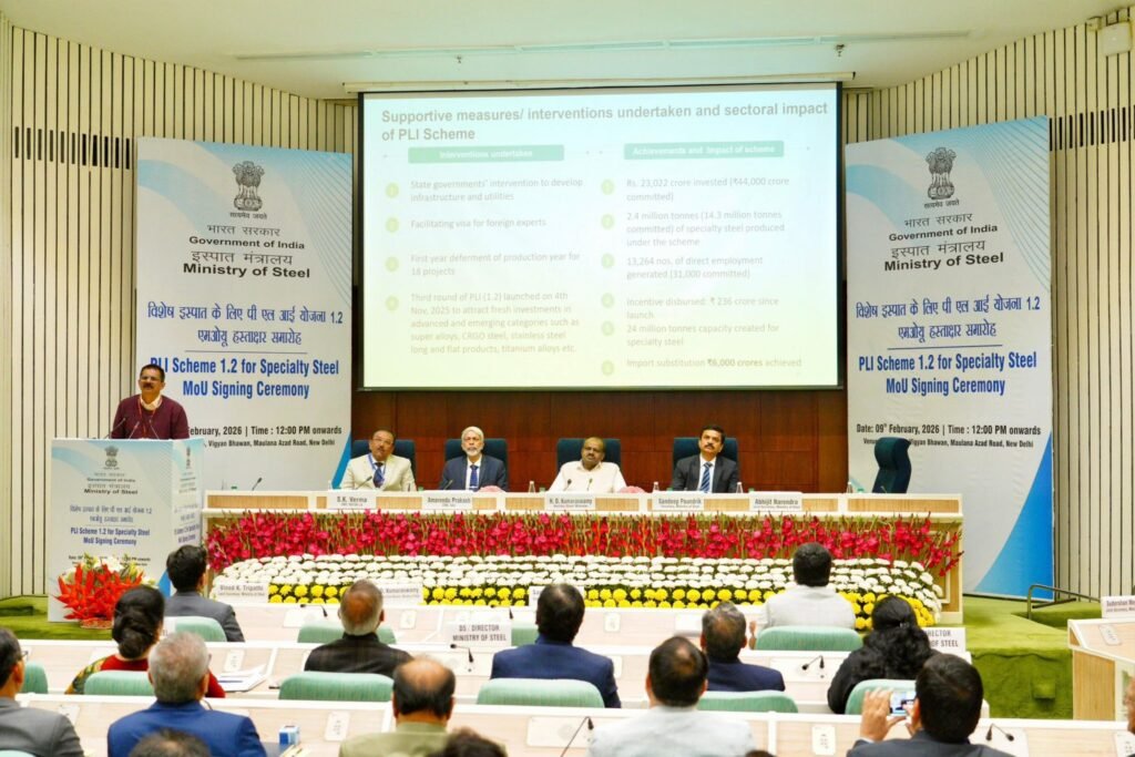 The Ministry of Steel has taken a major step towards strengthening India’s specialty steel ecosystem by signing memorandums of understanding with 55 companies for 85 projects under the third round of the Production Linked Incentive Scheme 1.2. The agreements were signed at Vigyan Bhawan in New Delhi, marking another milestone in the government’s broader Make in India manufacturing push.
