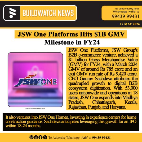 JSW One Platforms has raised Rs 575 crore from investors including SBI and JSW Steel to accelerate MSME growth, strengthen its NBFC arm,...